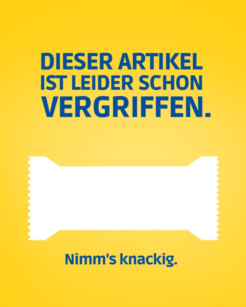 Im Riegelregal ging es ganz beschaulich zu. Alle waren ein bisschen frech, aber nicht so doll, dass sich jemand daran stören könnte. Alles war immer ganz lecker, aber auch nicht besonders. Dort hat niemand was gewonnen. Aber alle jeden Tag ein bisschen verloren. Bis PiCK UP! aufgeräumt hat. Mit ’ner Axt.